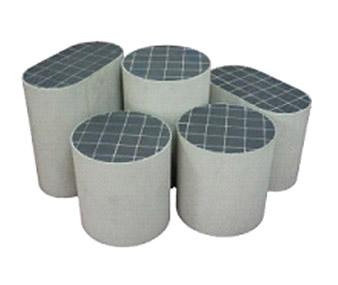 柴油車顆粒捕集器(DPF),是經特殊工藝提純處理的高純度碳化硅微粉為原料,按配方攪拌、煉泥、沉浮、成形燒制做成。產品壁流式結構,過濾體整體呈多通道蜂窩狀,再把平行通道進行相間堵孔,使其顆粒尾氣的捕集和凈化效果達到99.6%以上,引領國際先進水平。